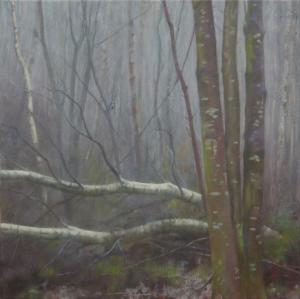 The exhibition will include five of my oil studies and a large charcoal study (all of silver birches) for my large oil painting 'Siding' which, as I write, is still very much in progress.